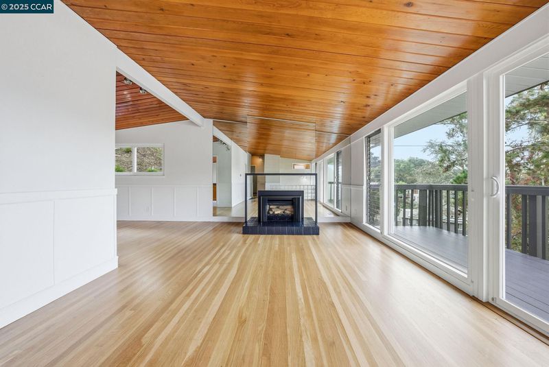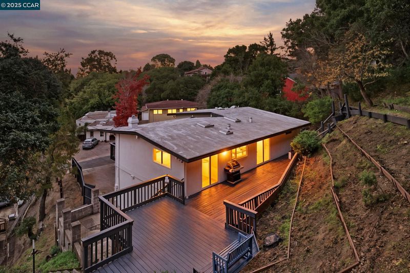 Tucked back in the desired El Sobrante Hills, this serene and stylish Mid-Century Modern home features all the comforts and distinctiveness of Bay Area Hills living. Gleaming hardwood throughout, expansive living room with gas fireplace and spacious front balcony, formal dining room with indoor/outdoor access and all 3 bedrooms. Tons of natural light streams through the dual pane windows / sliders providing beautiful neighborhood and hillside views. Updated eat-in kitchen with SS appliances, designer tile floors, granite countertops, and solid wood custom cabinet / pantry storage. Downstairs has family room with remote gas burning fireplace, sizable garage with plenty of storage and work counters. Central heat & A/C, Fresh paint inside and out. Private backyard deck with hillside views, side yard concrete patio off family room. Teared hillside with irrigation for planting. Fantastic commute location. Surrounded by markets, restaurants, shops, schools, and so much more just down the street and seconds away. OPEN HOUSE SUN 12/14, 12-3pm.