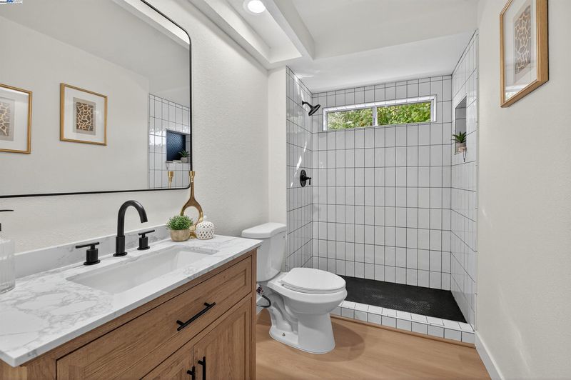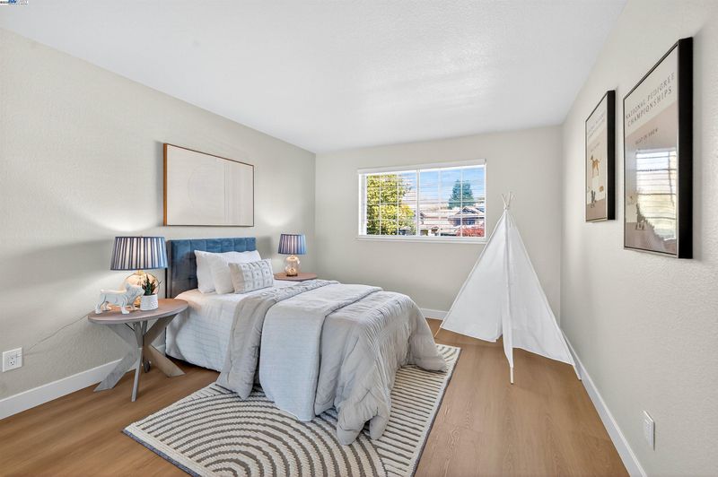 Do not miss this luxuriously remodeled larger 4 bedroom with 1 full bed and bath downstairs, located on an inner neighborhood street with STUNNING VIEWS of the San Ramon hills. From the moment you step inside the EAST facing front door you are greeted with soaring two-story vaulted ceilings, abundant natural light, wide plank flooring, new lighting, and an elegant formal living and dining room with a statement floor to ceiling tile fireplace. The FULLY REMODELED KITCHEN is a chefs dream featuring custom soft close white cabinetry, quartz countertops, marble backsplash, stainless steel french door oven, pendant lighting large peninsula with abundant seating and adjacent built-in bar area with sink, perfect for entertaining all your guests. At the top of the stairs you will enter the spacious primary suite with grand vaulted ceilings, two separate closets and a private balcony with expansive views. Additional bathrooms showcase all custom floor-to-ceiling tile showers and modern vanities with stone counters. The large usable backyard has two separate patio areas, no rear neighbors, large grassy area, newer fences, and a large side yard. Plenty of room for a pool, ADU , or side-yard access. Just turn the key and move right in.
