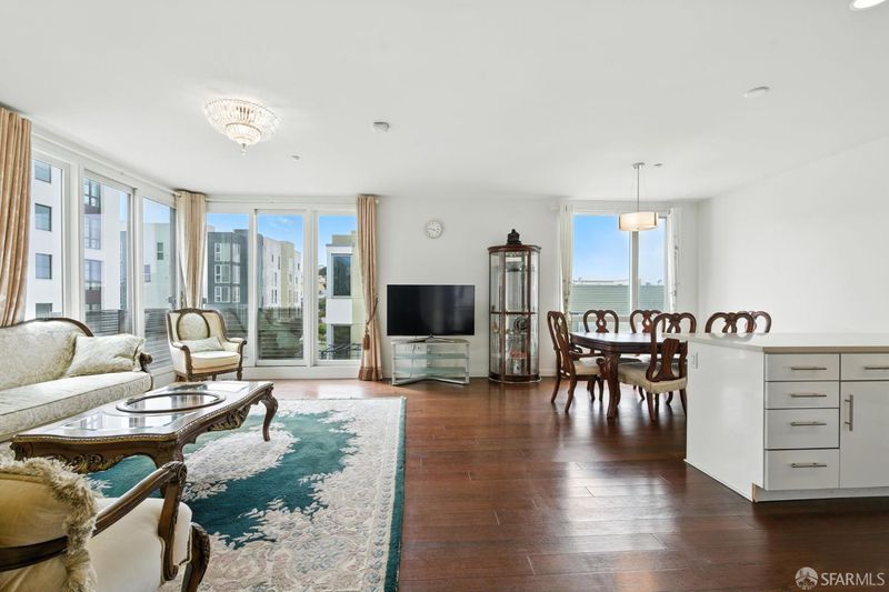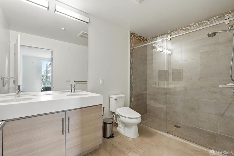 Welcome to 50 Jerrold Ave #215 a modern, move in ready 3 bedroom, 2 bath condo located in San Francisco's vibrant Hunters Point Shipyard.This corner unit with window views is wheelchair accessible and offers step free entry, NO STAIRS to the unit making it ideal for buyers seeking comfortable, single level living.This beautifully designed home offers an open concept layout with abundant natural light, Corner unit, wide-plank flooring, and a sleek kitchen featuring quartz countertops, stainless steel appliances, and ample storage. The spacious primary suite includes a walk-in closet and an ensuite bathroom with dual vanities. Additional highlights include in unit laundry and one assigned garage parking space. HOA dues are $684 a month plus a $35 a month master association fee, covering building maintenance and shared amenities. Enjoy proximity to waterfront parks, open space, and convenient access to MUNI, Caltrain, and freeway connections.