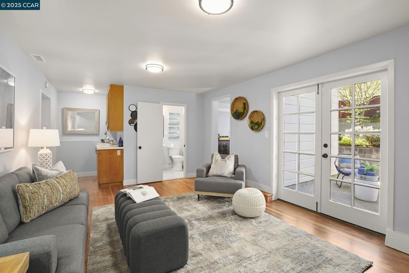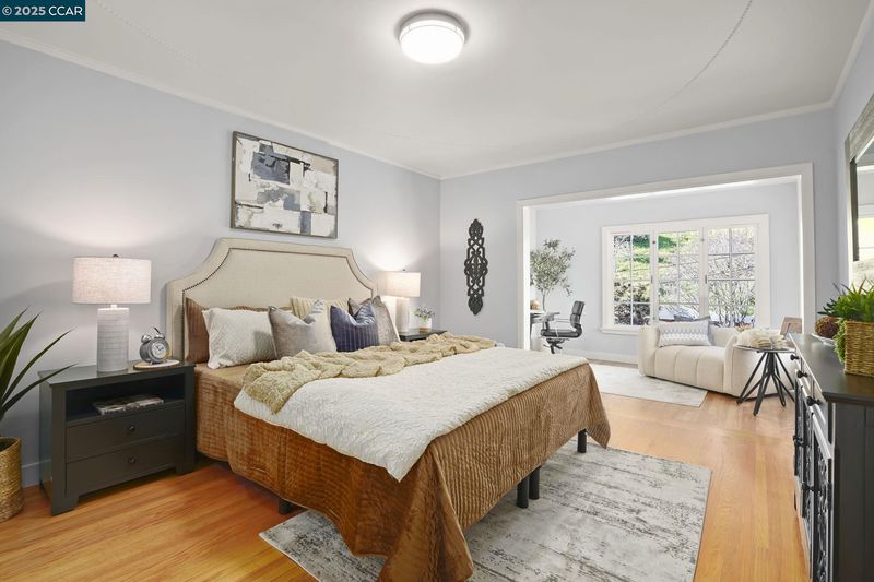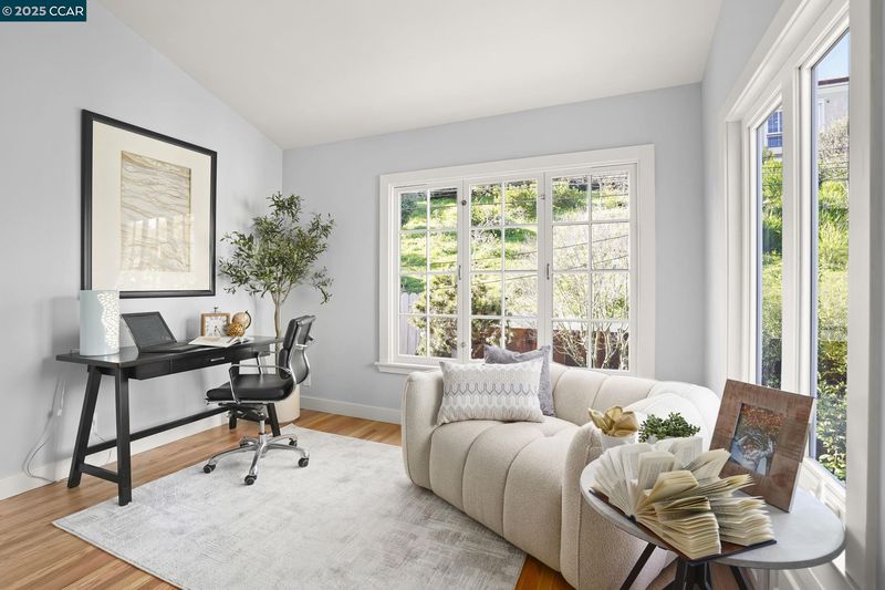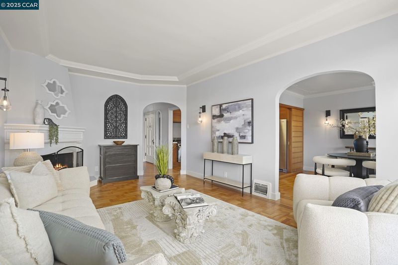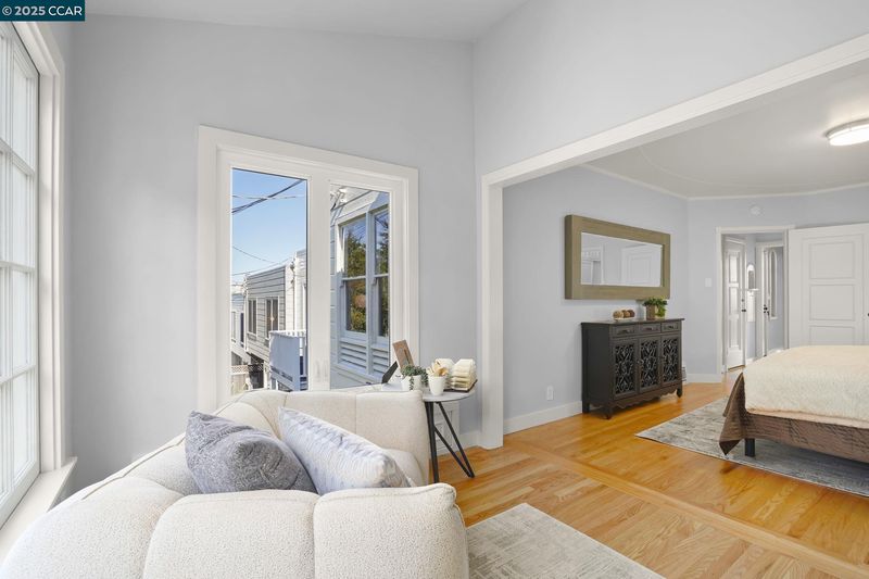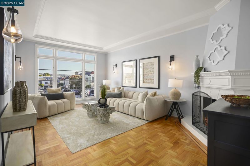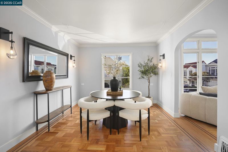 Welcome to 276 Ewing Terrace, Where San Francisco architecture meets modern living. Charming 3 bedroom, 2 bath home located in the desirable Lone Mountain neighborhood. This beautifully maintained residence features gleaming hardwood floors, a previously updated kitchen with new quartz countertops and backsplash, a commercial Challenger Wolf range that is not only functional but exudes timeless charm. The upper level boasts a bright living room with coved ceiling, and corner fireplace; formal dining room, a spacious kitchen, a main bedroom with expanded sunroom, a second bright bedroom, and a full bathroom with tub and a hidden shower and storage. The upstairs rooms feature delicate detailed plasterwork design on ceilings in bedrooms and dining room. The lower level offers a private retreat with a bedroom, bathroom, and second living area with backyard access and a separate entrance through the front entry—perfect for guests, remote work, or additional privacy. The fenced backyard, nestled against SFU, provides a coveted space for relaxation or gatherings. Additional amenities include forced air heating, a 32 foot deep (potential tandem) garage, full sized washer & dryer, and storage. Near Trader Joes, Laurel Village, Sacramento Street shops, dining, Golden gate park & NOPA.