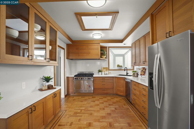 - Dishwasher, Gas Range, Range, Refrigerator, Dryer, Washer, Gas Water Heater, Counter - Solid Surface, Gas Range/Cooktop, Range/Oven Built-in, Skylight(s)