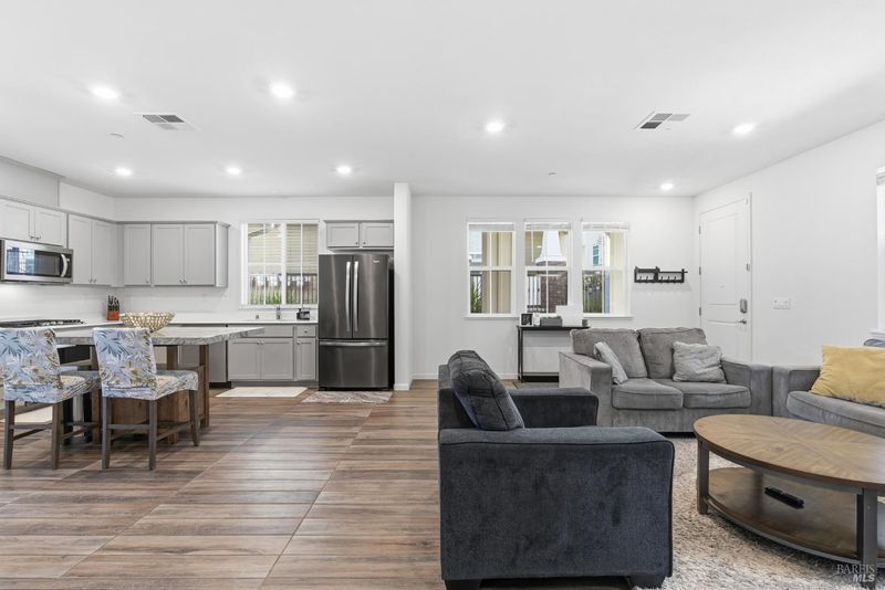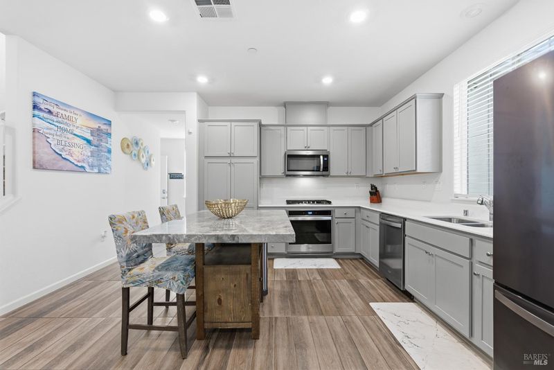 Welcome to 6420 Paysar Lane, a pristine better-than-new residence located in the desirable Hecker Pass corridor near Gilroy Gardens. Built in 2022, this townhome-style condo home showcases a distinct and highly sought-after configuration found in only selected homes within the community. It features a full two-car garage, a charming partial wraparound porch, and a private driveway. This special feature provides convenient additional parking for guests, a significant advantage that enhances the functionality and appeal of this property. Step inside to discover a designer interior defined by over $30,000 in thoughtful upgrades. The heart of the home is the gourmet kitchen, showcasing sparkling Quartz countertops and upgraded Diamond Westburke Shaker cabinetry in a soft Cloud finish. The sellers have included the luxurious moveable Marble kitchen island, making this space truly chef-ready. The open-concept living area features durable Banzai II 6x35 Porcelain Rigor tile flooring and custom blinds on all windows. For ultimate convenience, the kitchen appliances and refrigerator are all included in the sale, making this home truly move-in ready. This home is engineered for superior comfort and energy efficiency. It comes equipped with a fully OWNED Solar System (8 panels), meaning no lease payments and significantly lower energy bills. The climate is perfectly controlled by a multi-zone central heating and cooling system, complemented by a dedicated whole-house exhaust fan to keep the upper levels cool. Uniquely, this home features upgraded insulation in the interior walls and between floors for exceptional soundproofing and privacy. The garage is a true showstopper. It is a fully finished extension of the home, featuring painted walls, durable Epoxy flooring, and heavy-duty overhead ceiling racks for maximum storage. It is pre-wired and ready for your EV charger and utilizes a wireless keyless entry system for added security. Additional highlights include a convenient ground-floor bedroom suite, soft-close toilet seats in both full baths, upgraded linen cabinetry, and a tankless water heater. Outside, enjoy the raised planter bed for gardening or take a few steps across the street to the community dog park. Located just minutes from the Gilroy Outlets and easy freeway access, this home offers the perfect blend of luxury, convenience, and efficiency. This is a must see home! Schedule your tour today.