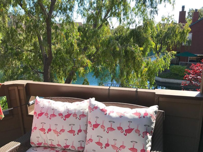Exquisite waterfront loft in Harbortown offers the perfect blend of luxury, serenity, and convenience. Enjoy sweeping lagoon views from the living room, dining area, kitchen, and open loft above. The soaring vaulted ceilings and skylights fill the home with natural light, creating an airy, peaceful retreat. The gourmet kitchen features granite countertops and premium cabinetry. The spacious primary suite includes a private balcony with fountain view, walk-in closet, and spa-like bath with soaking tub. The versatile loft area is ideal for a home office, gym, or guest room. In-unit washer/dryer. Resort-style amenities include indoor/outdoor pools, spa, sauna, and tennis courts. Easy access to Hwy 101, shops, and top-rated Aragon High.