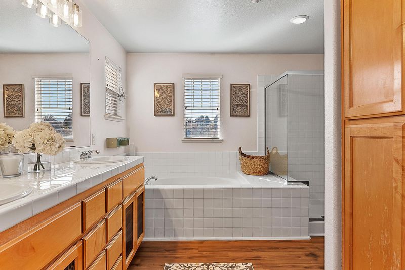 - Dishwasher, Microwave, 220 Volt Outlet, Tile Counters, Eat-in Kitchen, Disposal, Kitchen Island