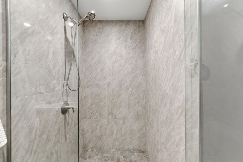 Shower over Tub - 1, Double Sinks, Tile, Primary - Stall Shower(s)