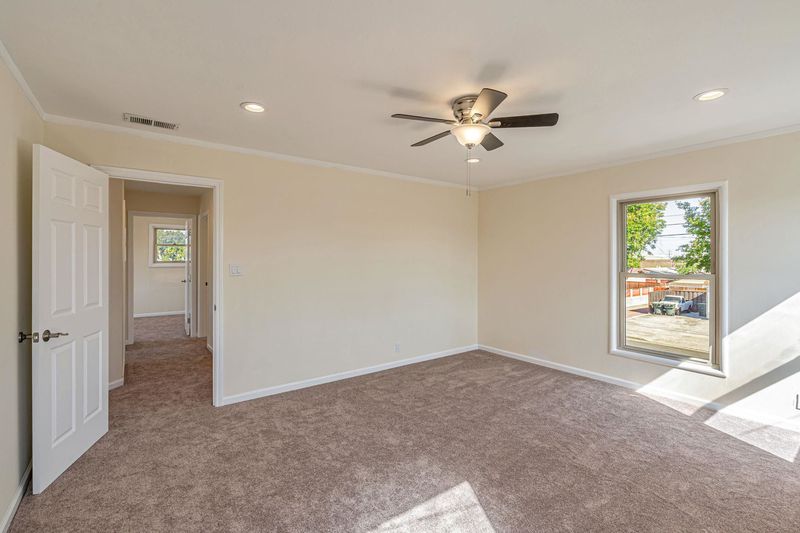 Beautifully remodeled throughout, this 2 story home has 4 bedrooms and 2 full baths & approximately 2100 square feet of living space. Spacious living room features gleaming luxury vinyl wood flooring, fresh neutral paint and a faux fireplace for ambient mood. All new interior 6 panel doors & can lighting in most rooms. The family room (could be dining room) features an entrance to the garage and ceiling fan as well as an alcove window bank. The kitchen has been remodeled with granite counters, freshly painted cabinets, can lights, new hardware and all new stainless steel appliances. Downstairs primary bedroom has a walk in closet with new closet organizers and opens to the low maintenance backyard. Brand new wall to wall carpet has been installed in the upstairs bedrooms. One car oversized garage with some storage cabinets included. Don't miss this move in ready home!