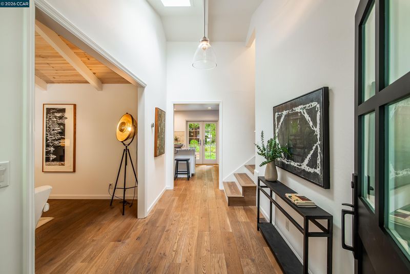Open Sat & Sun 1-4! Tucked at the end of a quiet cul-de-sac in Lafayette’s sought-after Trails neighborhood, this beautifully updated home offers an exceptional blend of privacy, convenience, and a serene creekside setting. Ideally located near top-rated Lafayette schools, the Lafayette-Moraga Trail, vibrant downtown shops and dining, and BART (approximately 0.25 miles), the location supports both an active lifestyle and everyday ease. Inside, warm wood floors span the main level, setting the tone for a light-filled and inviting interior. A dramatic vaulted living room creates an airy sense of volume and flows seamlessly into the formal dining area, where French doors open to the gardens, perfect for effortless indoor-outdoor entertaining. The updated kitchen is both stylish and functional, featuring granite countertops, stainless steel appliances, abundant prep space, and floor-to-ceiling cabinetry that offers generous storage. Just beyond, the spacious family room with a cozy fireplace provides a comfortable gathering space for everyday living, movie nights, or hosting guests, with a conveniently located powder bath. Upstairs, the private bedroom wing is filled with natural light. The primary suite serves as a peaceful retreat, complete with a spacious closet and an updated en suite bath. Secondary bedrooms are well-sized and share a beautifully updated hall bathroom, offering comfort and versatility for family, guests, or a home office. The backyard offers a beautiful park-like setting, an inviting outdoor sanctuary designed for both relaxation and entertaining. Multiple seating areas, a lush lawn, and mature landscaping create a sense of tranquility, while towering redwood trees and a picturesque creekside backdrop provide natural beauty and privacy. Whether enjoying a quiet morning coffee, hosting gatherings, or simply unwinding at the end of the day, this outdoor space feels like a private retreat. With its ideal location, thoughtful updates, and enchanting setting, 860 Paradise Court presents a rare opportunity to enjoy the best of Lafayette living.