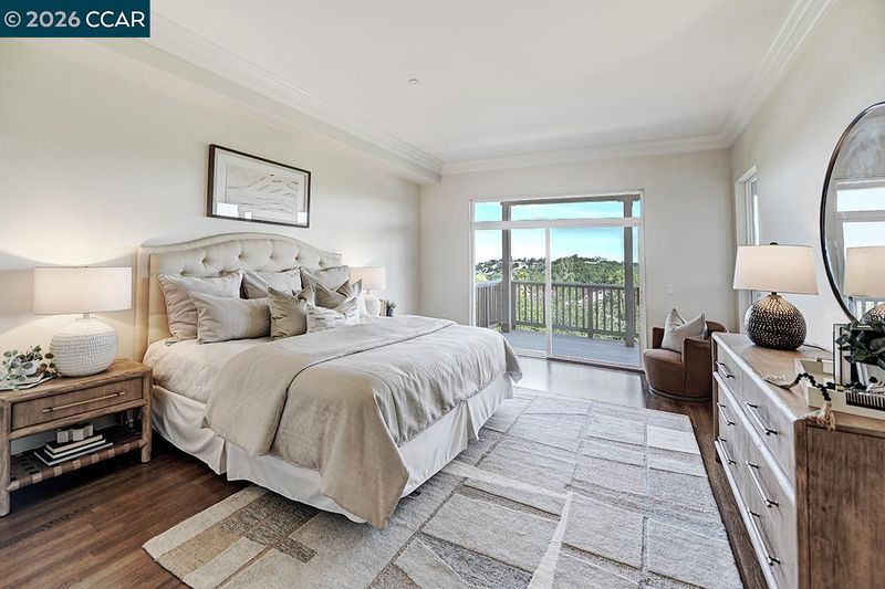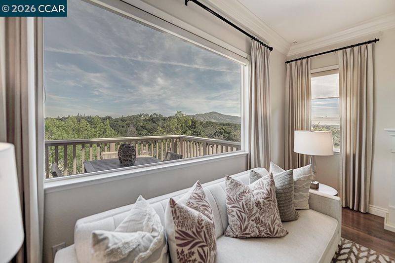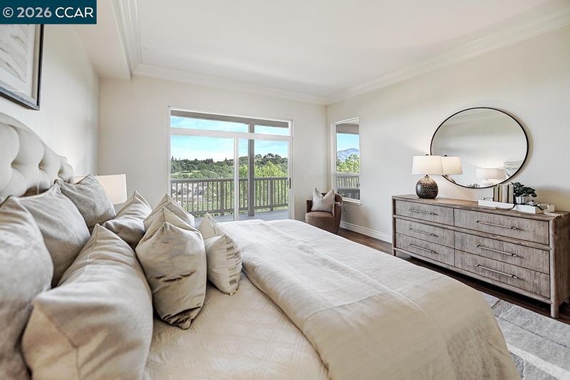 Rarely do you find a level-in home, end location that has been so beautifully remodeled and redesigned paired with distinctive architecture and breathtaking deep vista views of Mt Diablo. From the moment you enter, soaring 10-foot ceilings and walls of windows flood the space with natural light, immediately drawing you toward the expansive deck ~ a seamless extension of the living area that perfectly blends indoor and outdoor living. Every detail reflects exceptional craftsmanship and thoughtfully curated design creating an open concept floorplan for the living room and dining room allowing for endless ways to situation furniture. Living room is accented by heart warming electric fireplace. Kitchen has been redesigned with a large island, premium materials sourced from top-tier suppliers define the home’s refined character. Custom cabinetry, elegant Marble Carrara Gold countertops, high-performance appliances, handcrafted pass through opening to dining room, select crown & base moldings, baths provide the ultimate spa experience with beautiful details. Additional features are the gorgeous hardwood flooring, and expertly blended custom paint palettes come together to create a cohesive and sophisticated aesthetic. The result is a truly prominent residence !!!