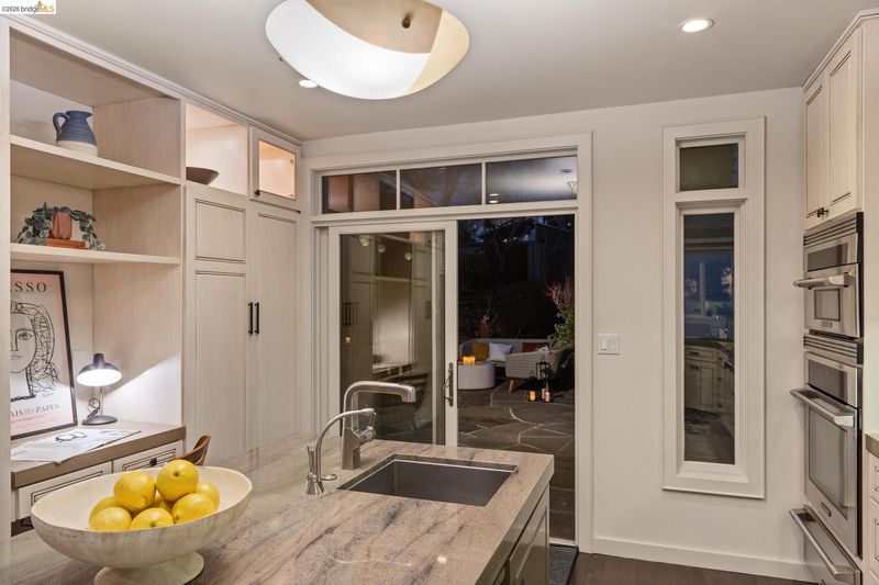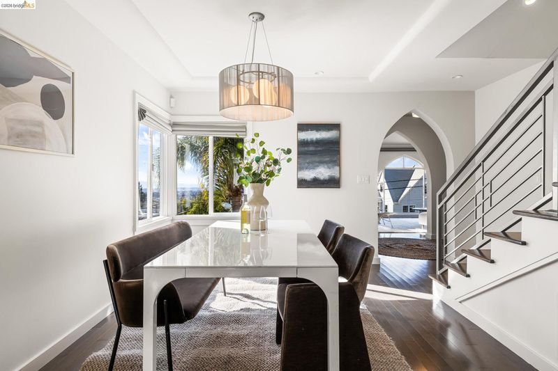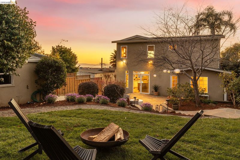 Beautifully remodeled and expanded in 2008, this designer home with Bay views is a true stand out home. Blending classic architecture with modern design, this special residence features rich wood floors, soaring ceilings, a fireplace in living room, and an open dining area flowing into a chef’s kitchen, ideal for entertaining. Light and airy, the kitchen includes an oversized island, stone counters, premium appliances, and peninsula bar seating. Sliding doors create seamless indoor-outdoor living to a remarkable, park-like backyard with hardscaped patio, grassy area, fruit trees and garden beds. The main level of the home offers two spacious bedrooms, including one ensuite. The upper level is dedicated to a luxurious primary retreat with stunning views, walk-in closet and spa-like bath with a secondary washer/dryer. On the lower-level find a charming guest suite - with both interior and exterior access - which boasts views, a bathroom and kitchenette creating exceptional flexibility. Convenient, long driveway with almost level in entry from back of home. Detached 2 car garage, solar panels and many system upgrades! Minutes to top rated Redwood Heights Elementary and close to shops, stellar dining, Redwood Regional Park, freeway & transit. What a wonderful place to call home!