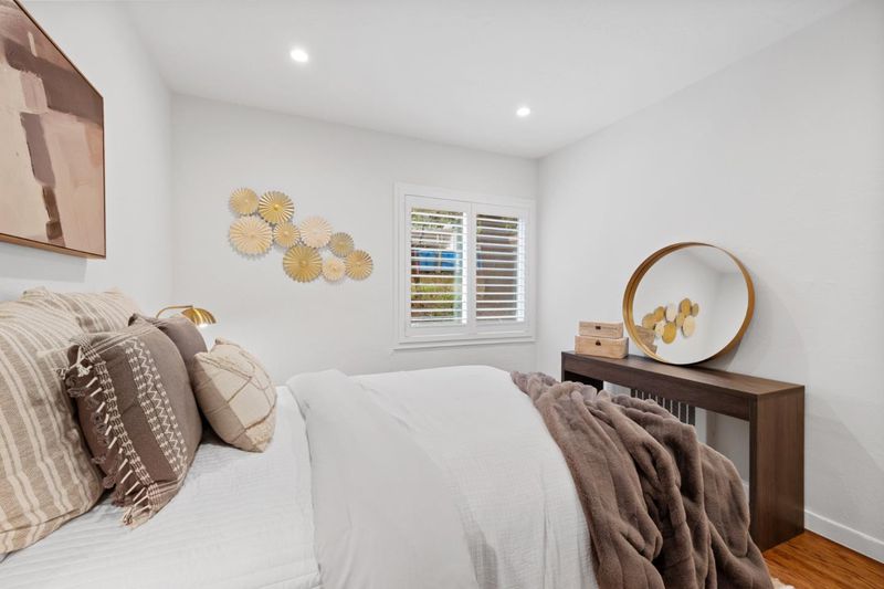 First-floor, 2bd/1ba updated condo in San Mateo Park. Features an open-plan living/dining area, hardwood floors, and white window shutters. The updated kitchen includes quartz countertops and stainless steel appliances (electric cooktop, dual ovens). Bathroom is fully refreshed with a quartz-topped vanity and a tiled shower over the tub. Updated electrical sub panel and updated closet shelving and doors in the primary bedroom. Amenities: Designated carport parking, private storage closet, common pool and barbecue area, and on-site laundry. Excellent, move-in-ready opportunity. HOA dues are $800 per month.