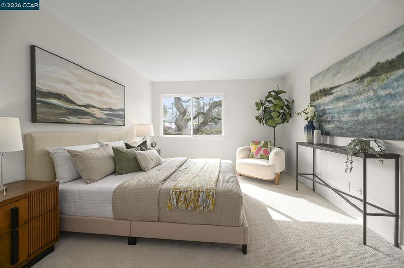 Welcome Home to Pleasant Hill! This spacious 3-bedroom, 2.5-bath townhome offers the ideal blend of comfort and convenience across two levels. Enter to discover a bright living room with soaring ceilings and a cozy fireplace—perfect for relaxing evenings. The welcoming kitchen features light wood cabinets, easy-care counters, and abundant storage, with a charming window overlooking a majestic old-growth oak tree in front. The dining area flows effortlessly onto your private back patio, creating an ideal space for indoor-outdoor entertaining. Upstairs, you'll find three inviting bedrooms, including a primary suite with a spacious walk-in closet and remodeled walk-in shower. One bedroom enjoys dramatic vaulted ceilings that add to the home's airy feel. The conveniently located second-level laundry closet makes daily tasks a breeze. Fresh updates throughout include new closet doors, plush new carpet, and crisp interior paint, while all bathrooms have been thoughtfully refreshed. Your attached two-car garage provides easy access and plenty of storage. The vibrant Tres Lagos North community enhances your lifestyle with pools, tennis courts, and a clubhouse. You'll love the walkability to shops and services. Freeway just blocks away. Close to D.V.C., bike trail and D.T. Pleasant Hill.