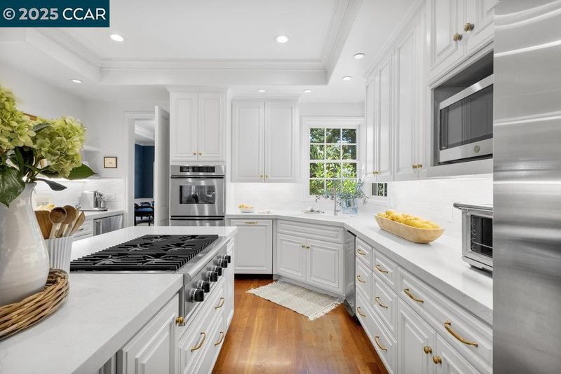 - Dishwasher, Double Oven, Gas Range, Oven, Refrigerator, Breakfast Bar, Stone Counters, Eat-in Kitchen, Disposal, Gas Range/Cooktop, Kitchen Island, Oven Built-in, Pantry, Updated Kitchen, Wet Bar