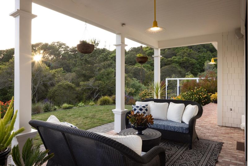 Honey Hill is a 21+ acre estate in the Aptos Hills that combines privacy, scale, and proximity, set among the rolling landscapes of Larkin Valley with panoramic views and minutes to Aptos Village and the coast. Built in 2014, the 3,796 sq ft home is designed for both daily living and entertaining, with wraparound brick porches, high ceilings, abundant natural light, and seamless indoor outdoor flow. The living room features a fireplace, built-ins, and direct backyard access. The chef's kitchen includes marble countertops, farmhouse sink, island, breakfast bar, walk-in pantry, and breakfast nook, with a dining room opening to the porch and a separate library for retreat. The main-level primary suite offers herringbone floors, walk-in closet, and a bath with clawfoot tub and double shower, while upstairs includes three bedrooms, full bath, family room, and office. Outdoor amenities include covered dining, firepit, outdoor kitchen, gardens, fruit trees, trails, and space for horses. Additional features include an oversized garage, mudroom, RV hookups, generator, and potential for a barn or ADU. A rare position where acreage and privacy meet coastal access, offering the feel of a secluded ranch just minutes from Aptos, Santa Cruz, and the broader Monterey Bay.