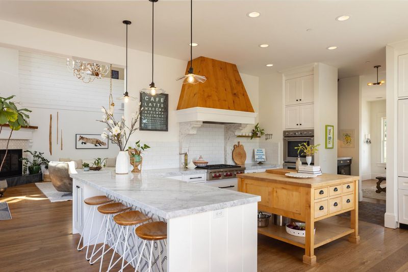 - Countertop - Marble, Freezer, Garbage Disposal, Hood Over Range, Island, Oven - Double, Wine Refrigerator, Refrigerator, Oven Range - Built-In, Gas