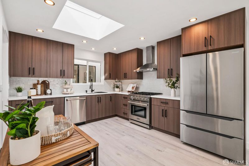 The main level is bathed in natural light from overhead skylights creates an airy, inviting atmosphere with a functional and comfortable layout. The heart of the home is the captivating and cheerful chef's kitchen with contemporary finishes, coupled with the formal dining room. The serene primary suite offers en-suite bath, two additional bedrooms, a hall bathroom. The versatile lower level provides exceptional flexibility, offering a third full bathroom and rooms that can serve as additional bedrooms, a media room, or a home office complete with an existing wet bar for multi-generational living, guests, or a home office. A convenient half bath and a separate laundry hook up in the hallway. Step outside to a custom-landscaped, low-maintenance backyard patio perfect for relaxation. 2-car side-by side garage adds convenience and peace of mind. Ideally located near MacLaren Park, shopping, cafes, restaurants, shops, playgrounds, public transportation, HWY 101/280 and more!