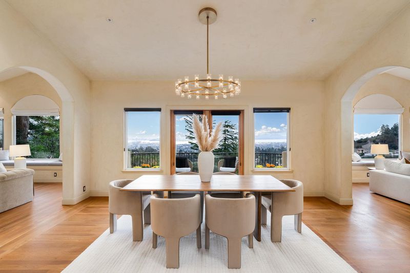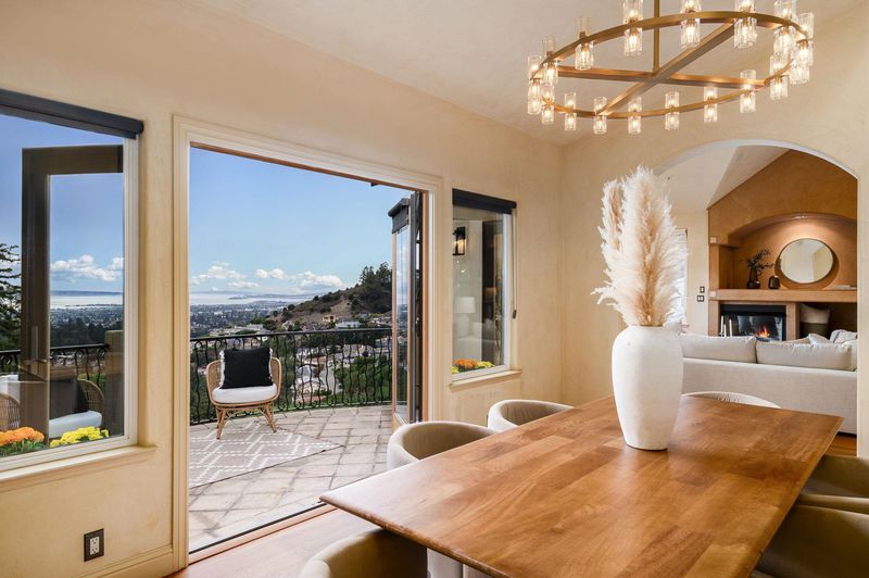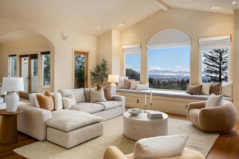 Jaw-dropping panoramic views of the San Francisco skyline, the Golden Gate Bridge, the Bay Bridge, and glittering bay waters define 6257 Virgo Road, a one-of-a-kind Montclair hillside estate perched on a tranquil street. More than 5,100 sq ft of refined, move-in-ready living sits on a lushly landscaped 14,544 sq ft lot, with seamless indoor-outdoor flow built for elevated everyday living and unforgettable entertaining. An expansive chef’s kitchen opens to formal living and dining rooms with soaring ceilings and walls of glass framing the views. A sunlit, dedicated office creates the ideal work-from-home sanctuary. Four spacious bedrooms and 3.5 spa-inspired baths include a showstopping primary suite with a fireplace, sitting area, and a boutique-caliber walk-in closet with custom built-ins. Downstairs, enjoy a home theater plus gym or flex space. Outside, a generous yard is enhanced by a seasonal creek and a charming handcrafted bridge, perfect for morning coffee and golden hour gatherings. Owned solar with Tesla Powerwalls, hardwood floors, and three gas fireplaces complete this exceptional offering. Minutes to Montclair Village, parks, and easy commuter routes.