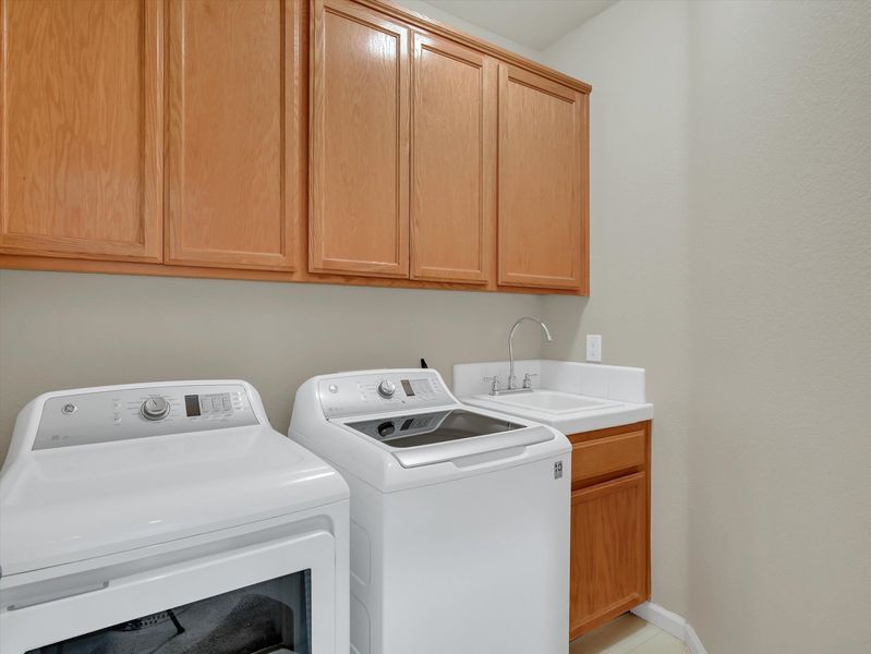 Dryer, Laundry Room, Washer, Cabinets, Sink