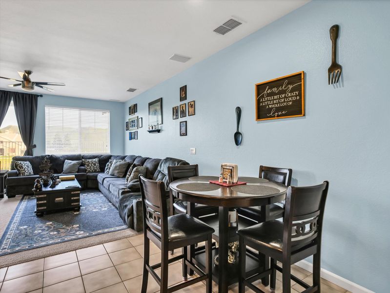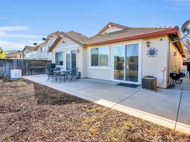 Resort-style living in the Prestigious & Secluded Diablo Grande community! This vibrant, light-filled single-level home offers nearly 2,000 sq ft on a 5,000+ sq ft lot with NO Rear Neighbors, Extended Driveaway for ample parking, Leaf Filter Gutter Guards, New Water Heater, and NO STEP Entry! Interior highlights include calming paint tones, warm color schemes, vaulted ceilings, cozy carpet and tile flooring, oak cabinetry, abundant natural light, Laundry Room with cabinets, Utility Sink, and a whole-house water softener. The spacious kitchen features expansive counters, built-in workstation, a large island with sink and a filtered drinking water system, seamlessly opening to the inviting living room with a gas fireplace. The low-maintenance backyard is peaceful, placid, and includes a Generac generator for uninterrupted power during outages!!! The generous primary suite offers direct yard access, dual-vanity sinks, bath suite with grab bars, and a deep-soak jetted tub. Community amenities include front-yard landscape maintenance, clubhouse, golf course, walking trails, parks and MORE!! A clean, comfortable, beautifully maintained home ready to enjoy.